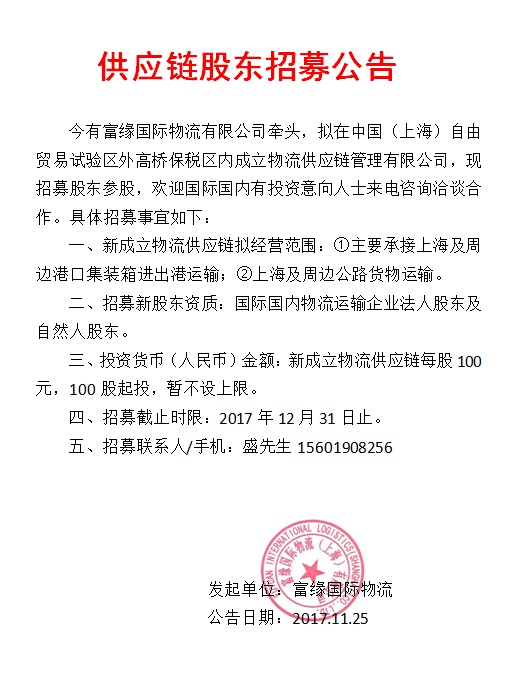 名称:富缘国际物流(上海)有限公司